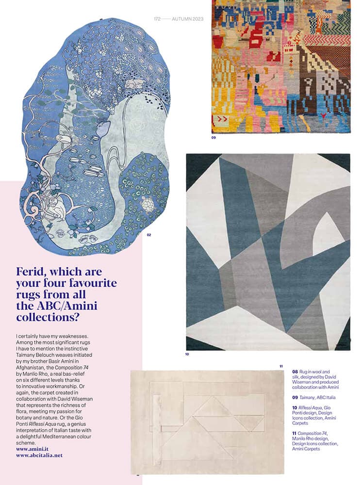 – Within Europe: send a written request to info@amini.it within 14 days of arrival of the carpet. All return and new shipping costs will be charged to the customer.